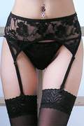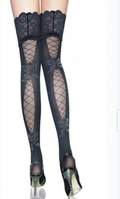 Черные чулки с широким вырезом на задней стороне, украшенным плетением