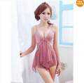 Комплект красивого эротического белья из комбинации с розовым кружевом и трусиков.