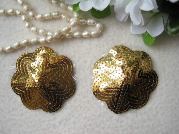 Блестящие наклейки на грудь расшиты пайетками золотого цвета.