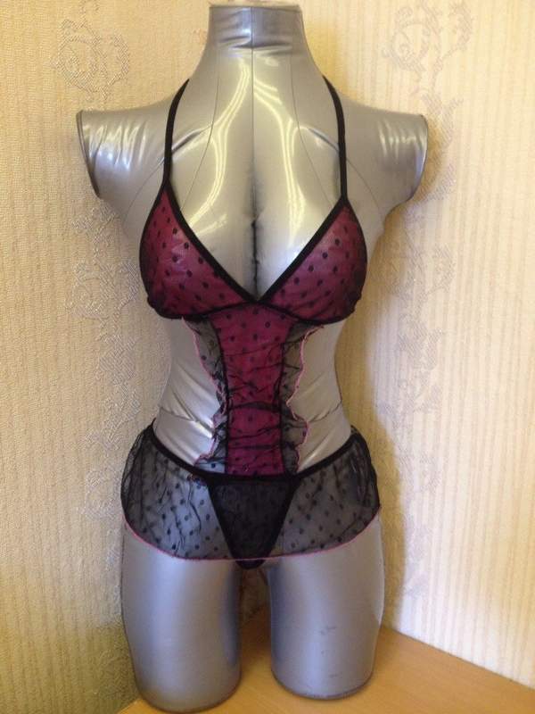 Сексуальное сетчатое боди в черный горошек.