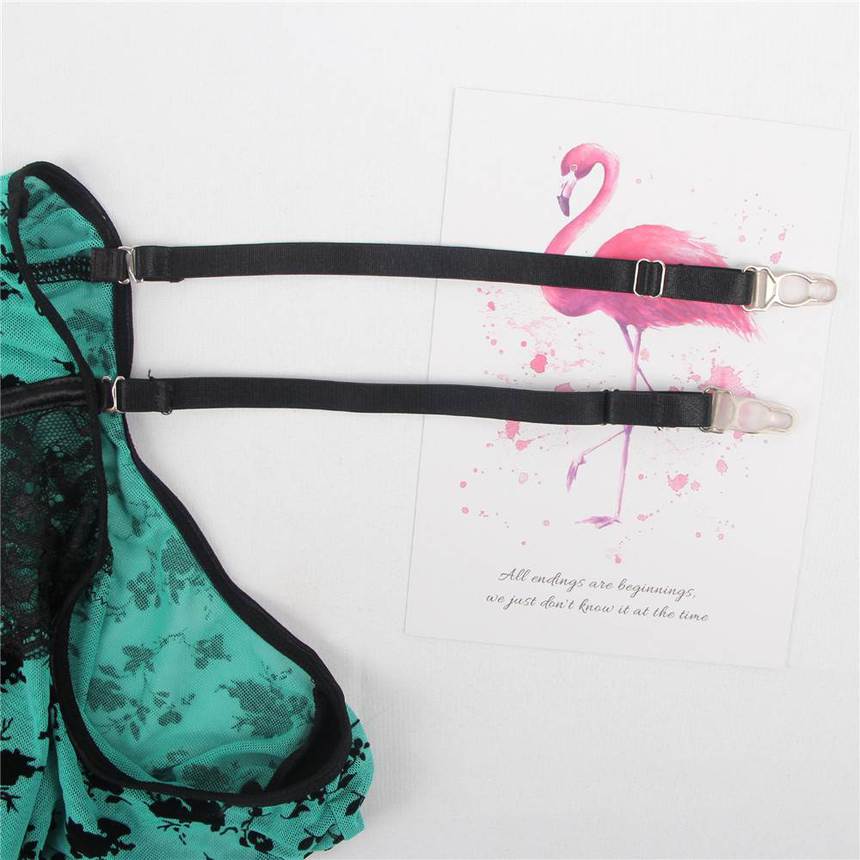 Элегантное боди изумрудного цвета дополнено съемными подвязками для чулок и аксессуаром на шею.