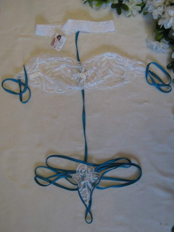 Мягкое кружевное боди выполнено в виде трусиков, переходящих по одной тоненькой лямочке в роскошный лиф, а затем и в ошейник.