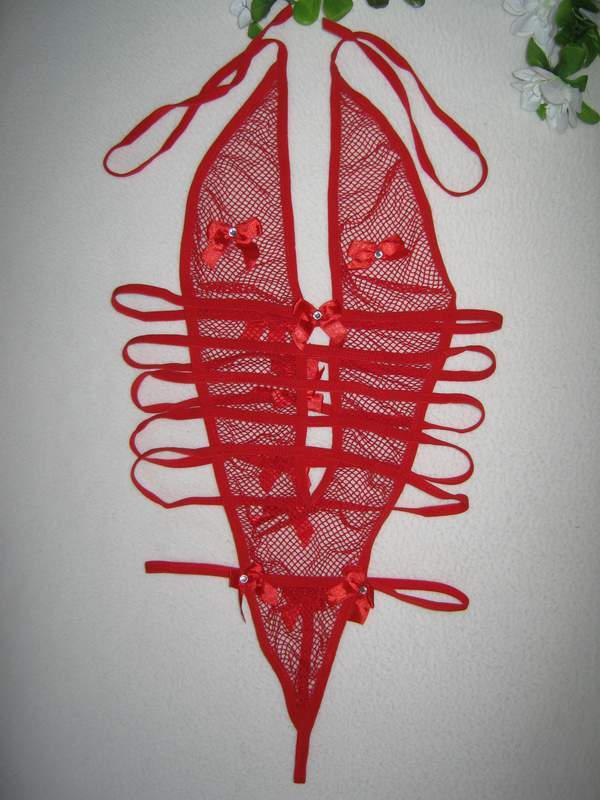 Пикантное боди в мелкую сетку фиксируется тонкими бретельками.