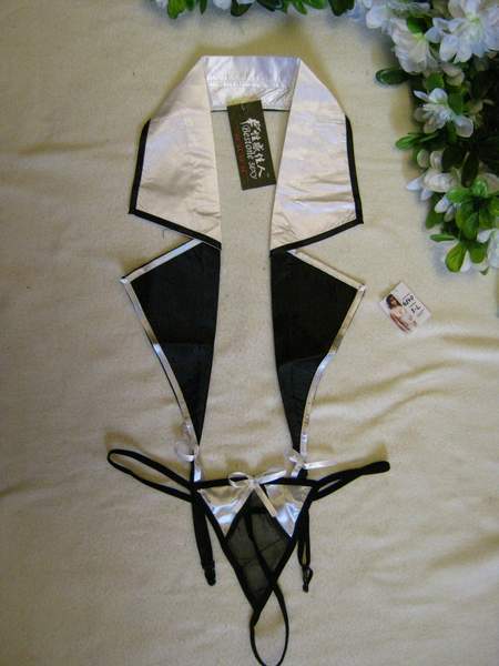 Черно-белое боди с воротничком и со съемными подвязками к трусикам.
