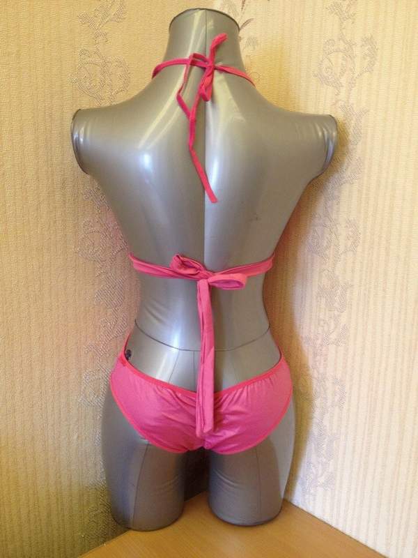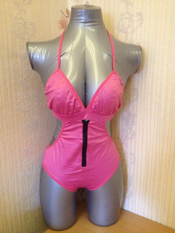 Яркое боди с открытой спинкой декорировано молнией спереди и сборкой на попке.