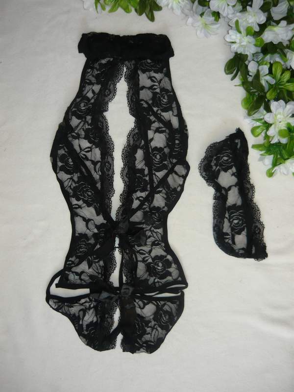 Эротичное кружевное боди с открытой спиной. Повязка на глаза в комплекте.