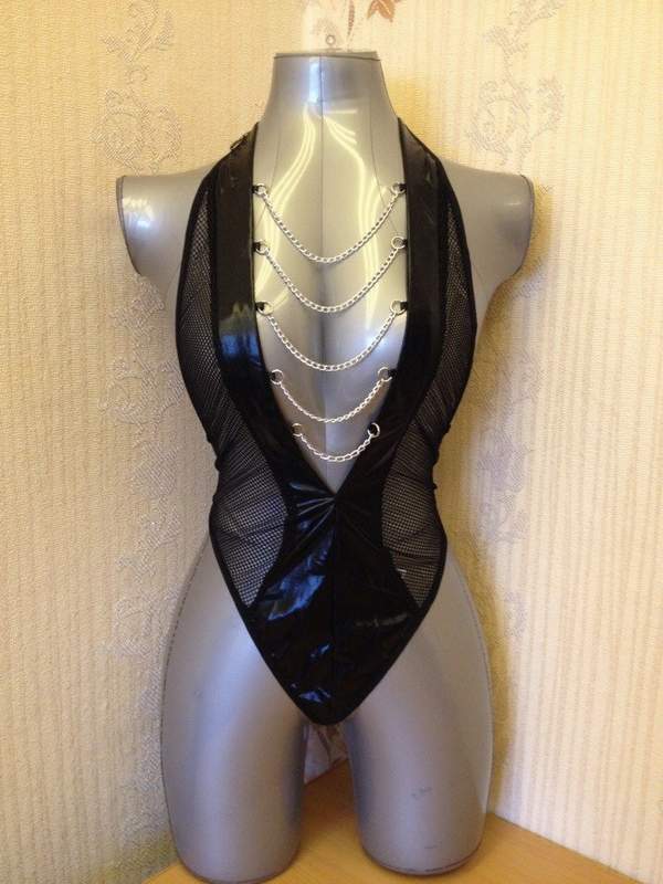 Чувственное боди из сетки и виниловых вставок. Цепочки добавляют в образ нотку разврата. В комплекте наручники.
