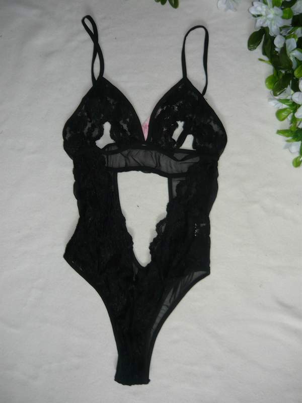 Откровенное кружевное боди соблазнительно подчёркивает фигуру, приоткрывая грудь.