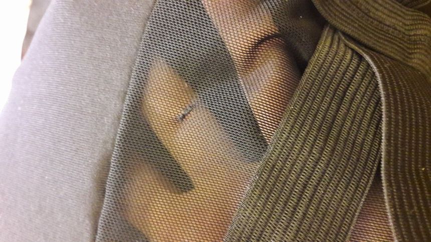 небольшая зацепка на микросетке в области живота (см.фото в описании)