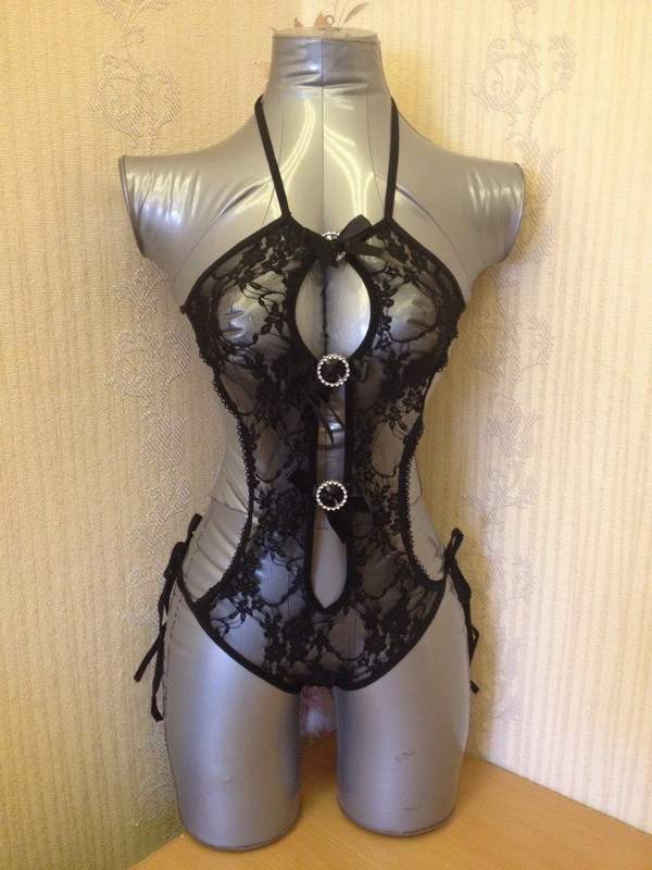 Кружевное боди с цветочным рисунком привлекает внимание блестящим декором спереди.