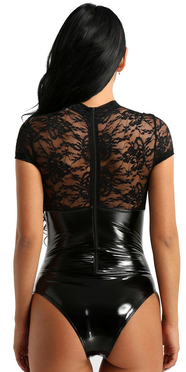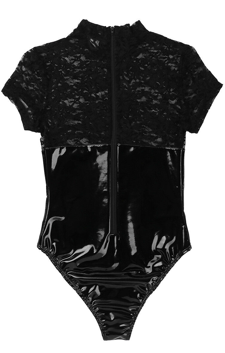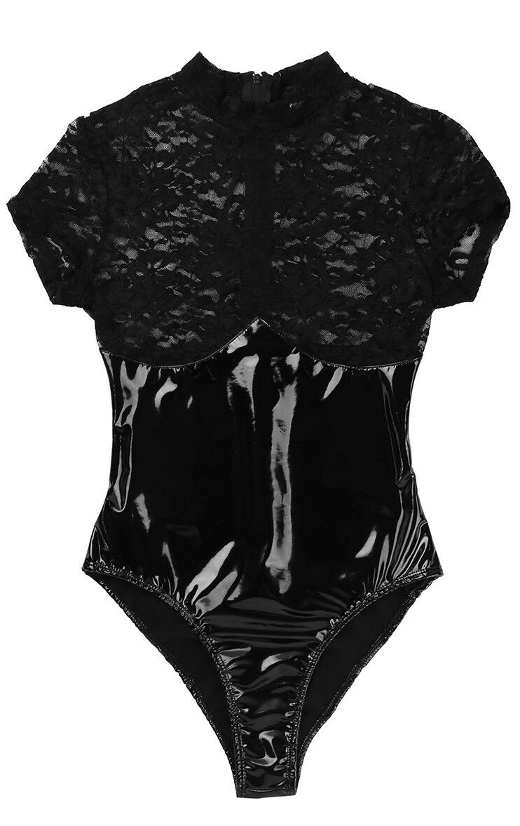Эротическое боди с кружевным верхом. Нижняя часть боди выполнена из материала, имитирующего винил.