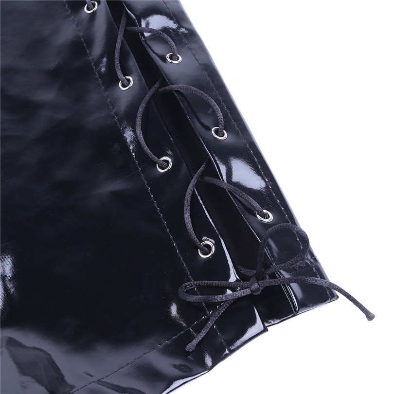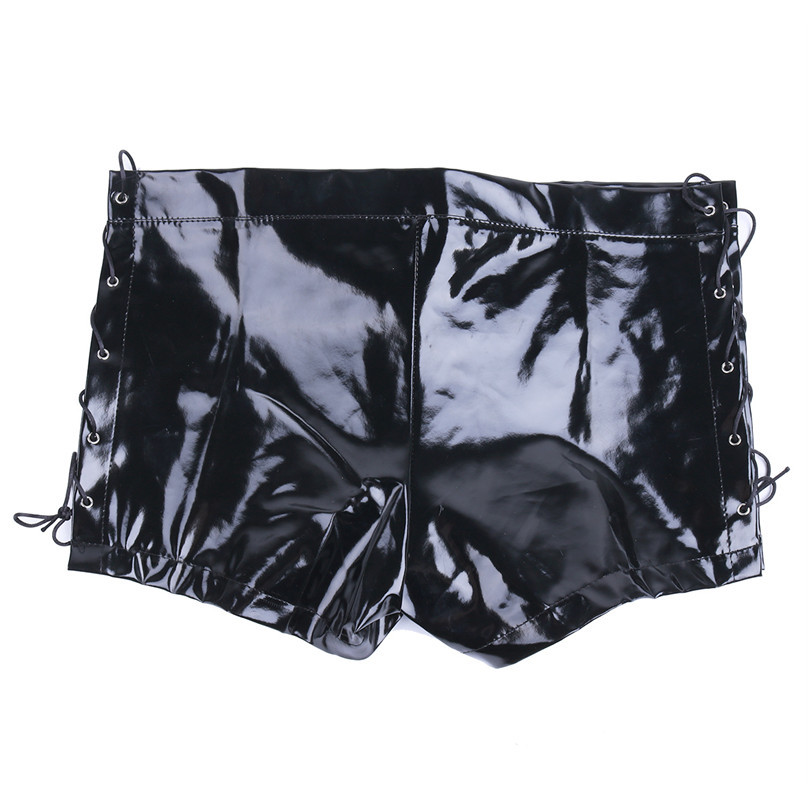 Мужские шорты из винила имеют шнуровку по бокам, что позволяет корректировать размер под конкретную фигуру.