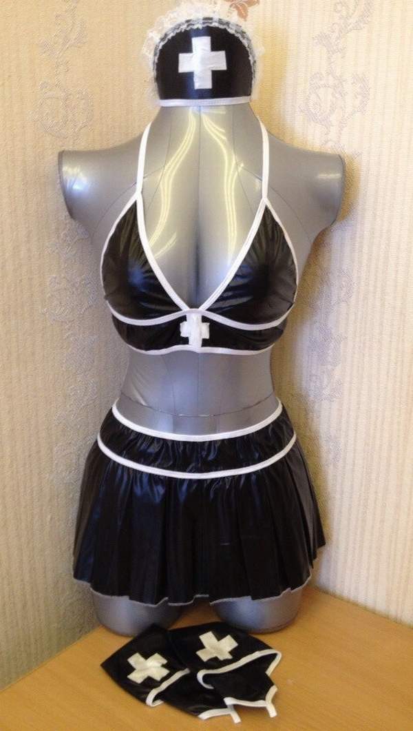Виниловый комплект сексуальной медсестры. Юбочка в складочку порадует вас озорством и разнообразием.