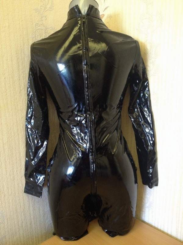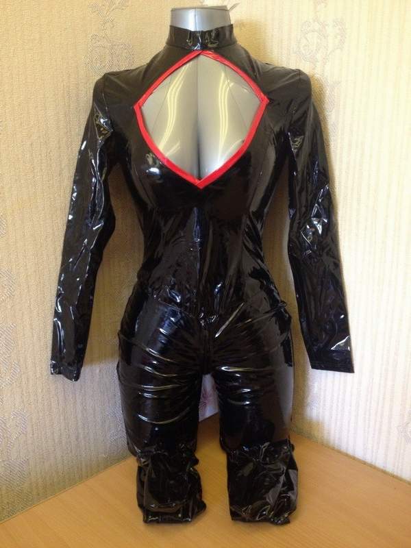 Обтягивающий комбинезон из винила на молнии с вырезом в области декольте.