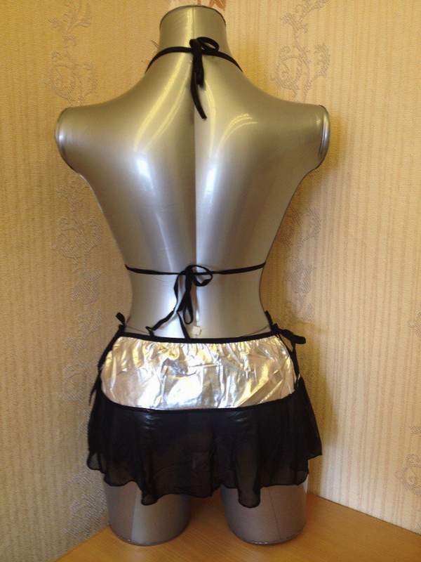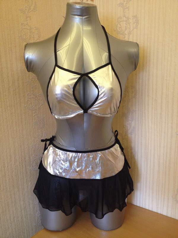 В комплекте юбочка и серебряный топ. Изящность юбочке придает тонкий сетчатый материал.