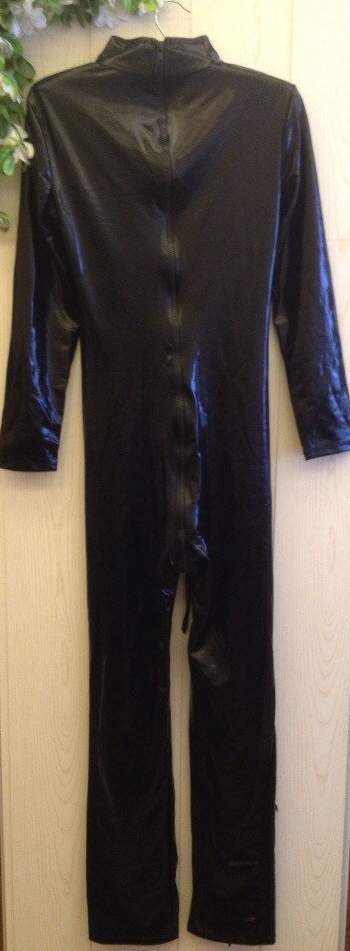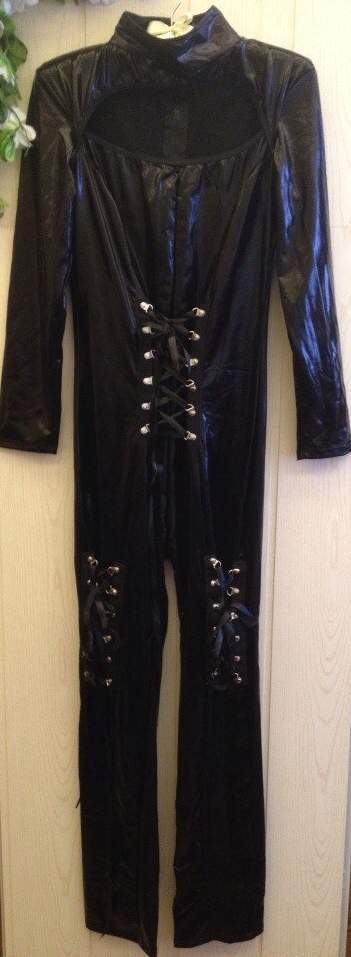 Изящный комбинезон из ткани, имитирующей винил. Ушки в комплекте.
