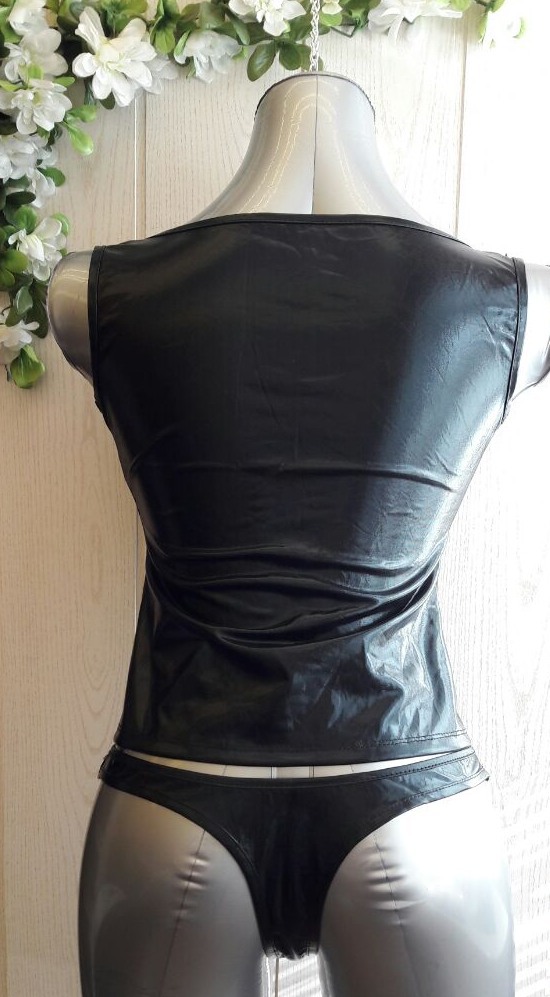 Комплект дополняют трусики-стринги из той же ткани