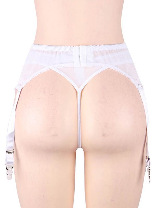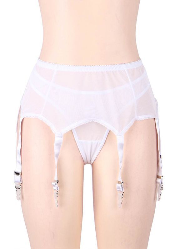 Полупрозрачный белый пояс для чулок. Аксессуар выполнен из эластичной микросетки. Сзади бельевая застежка-крючки.