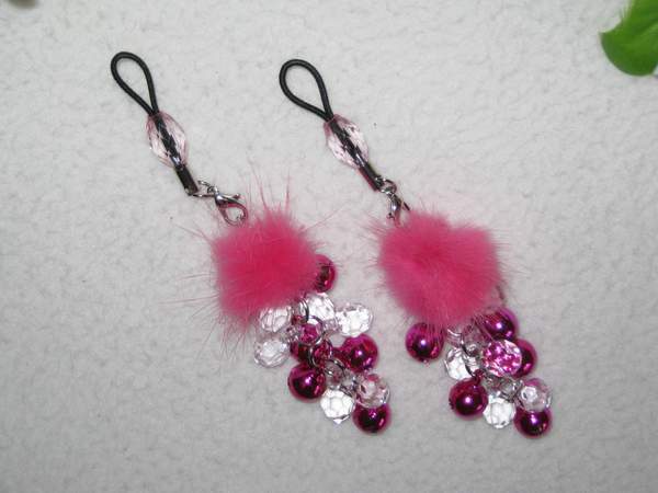 Звенящие привлекательный подвески на соски с мехом. Для того, чтобы зафиксировать их на сосках, необходимо всего лишь затянуть петельку.