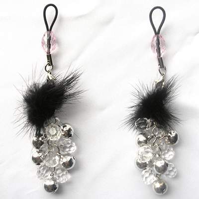 Звенящие привлекательный подвески на соски с мехом. Для того, чтобы зафиксировать их на сосках, необходимо всего лишь затянуть петельку.