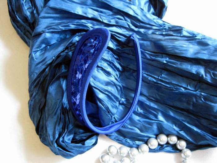 Привлекательные С-стринг синего цвета из тонкой сеточки. Поверхность С-стринг расшита блестящими пайетками.
