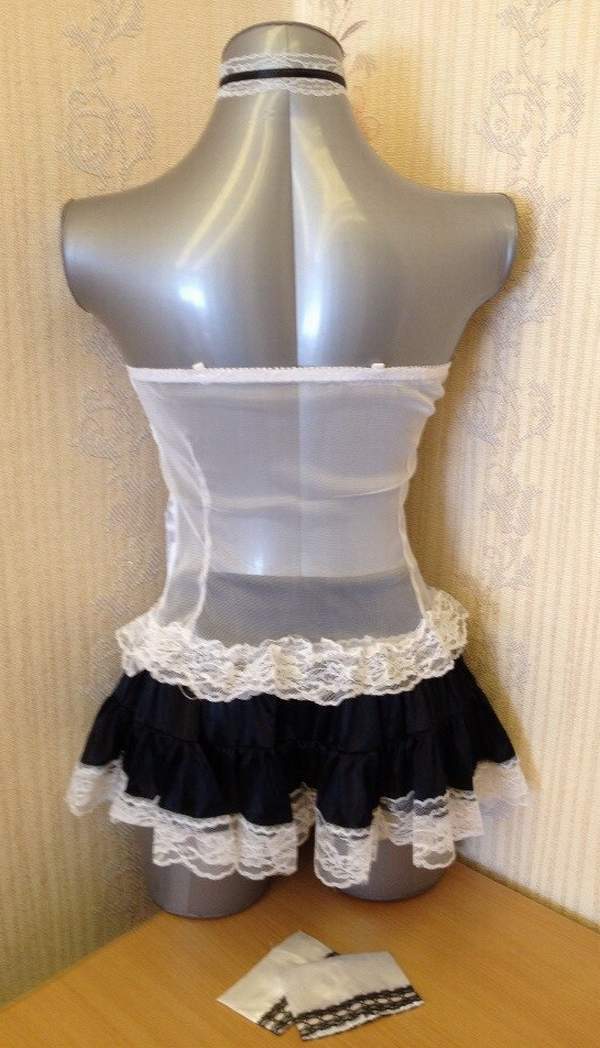 Раздельный комплект горничной заинтригует вашего мужчину. Топ сзади выполнен из полупрозрачного материала