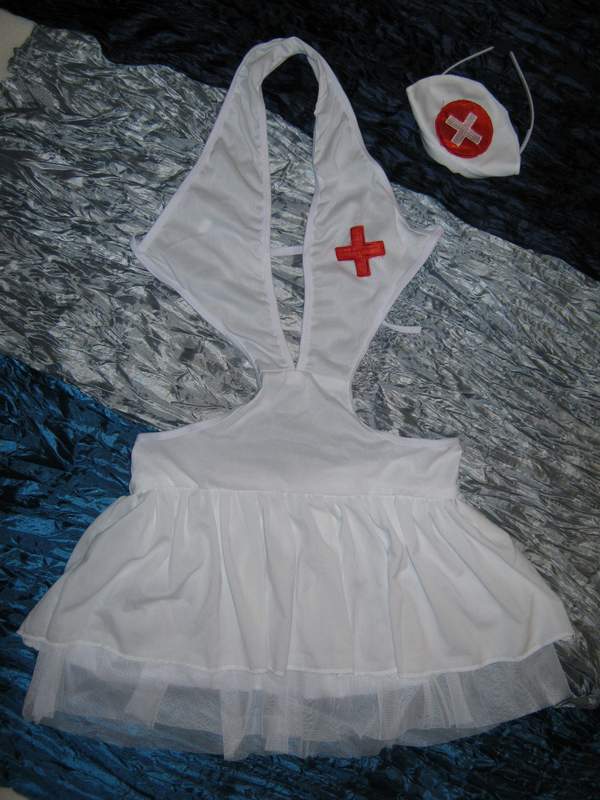 Игровой эластичный костюм медсетры с многослойной юбочкой, спинка открытая.