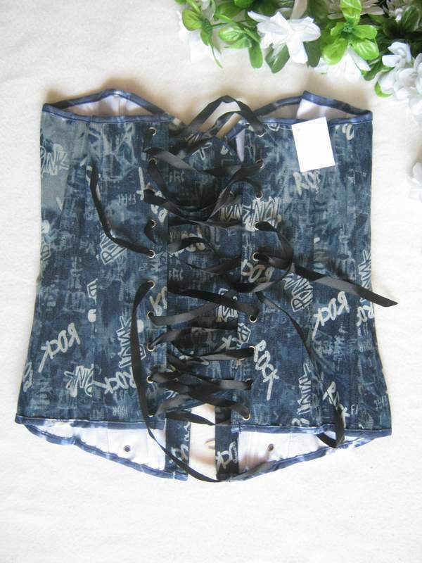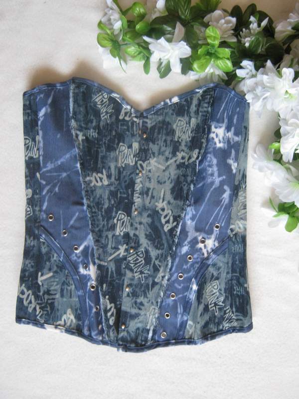 Классический джинсовый корсет на шнуровке. Застежка - стальной бюск спереди.