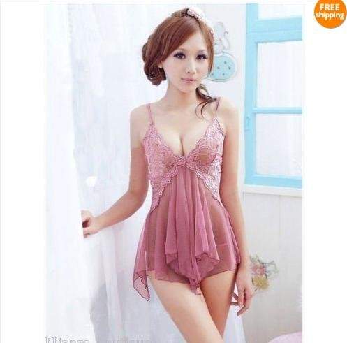 Короткая ажурная сорочка с неровными краями по низу, на бретельках, в комплекте трусики-стринги