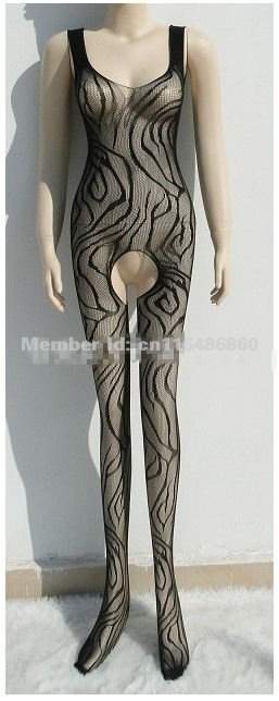 Сетчатый комбинезон без рукавов и с разрезом в интимной части.