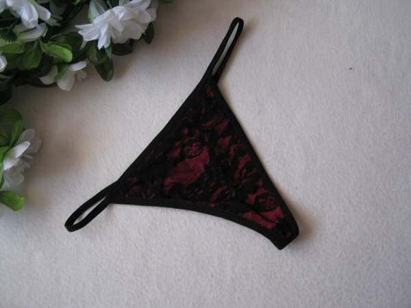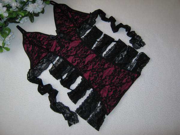 Сексуальный комплект из трусиков-стринг и кружевной сорочки с вырезами по бокам.