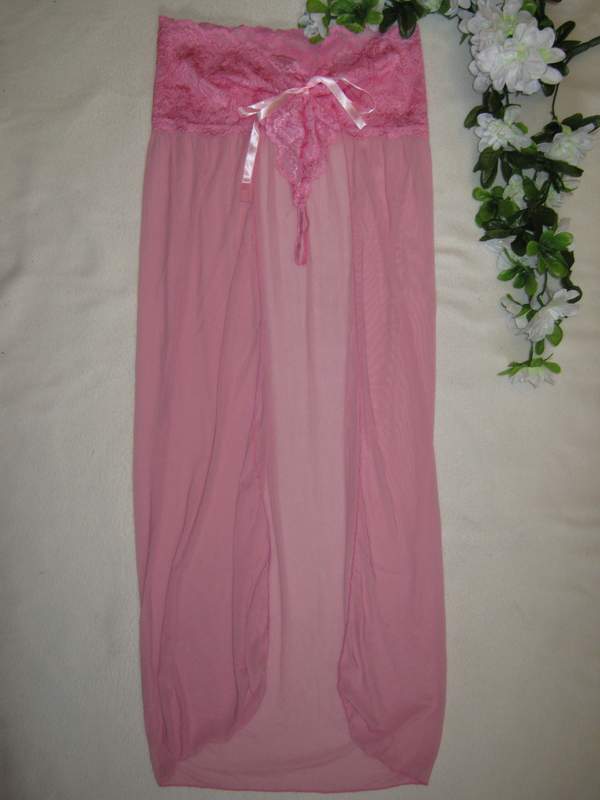 Сексуальный полупрозрачный комплект состоит из топа на тонких бретельках и трусиков, переходящих в юбочку.