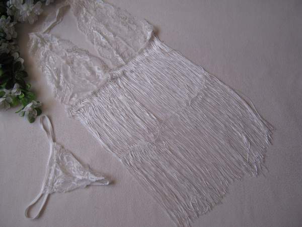 ксуальный комплект из трусиков-стринг и топа с тонкими веревочками.