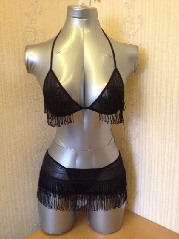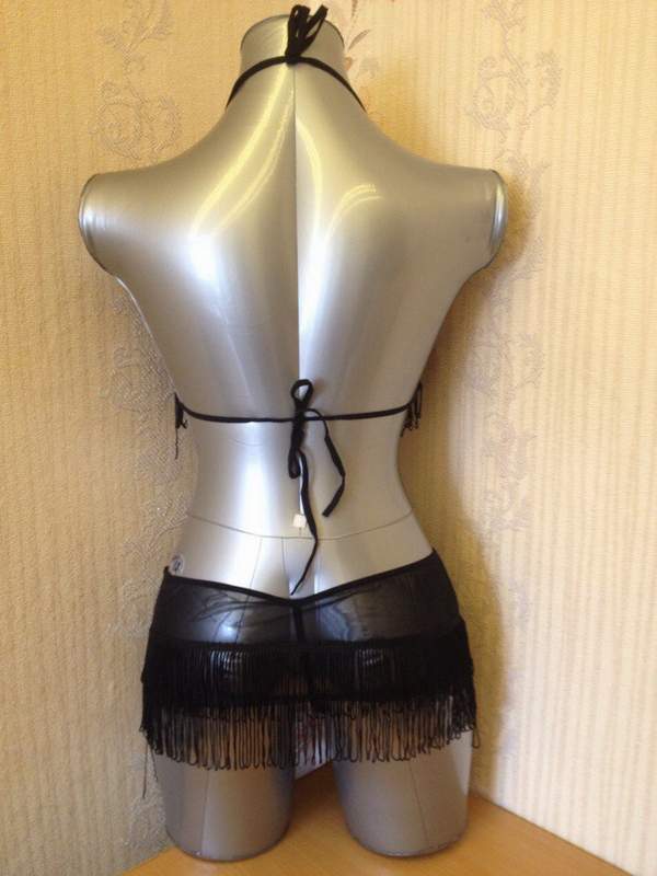 Сексуальный игривый копмлект украшен бахромой в два ряда.