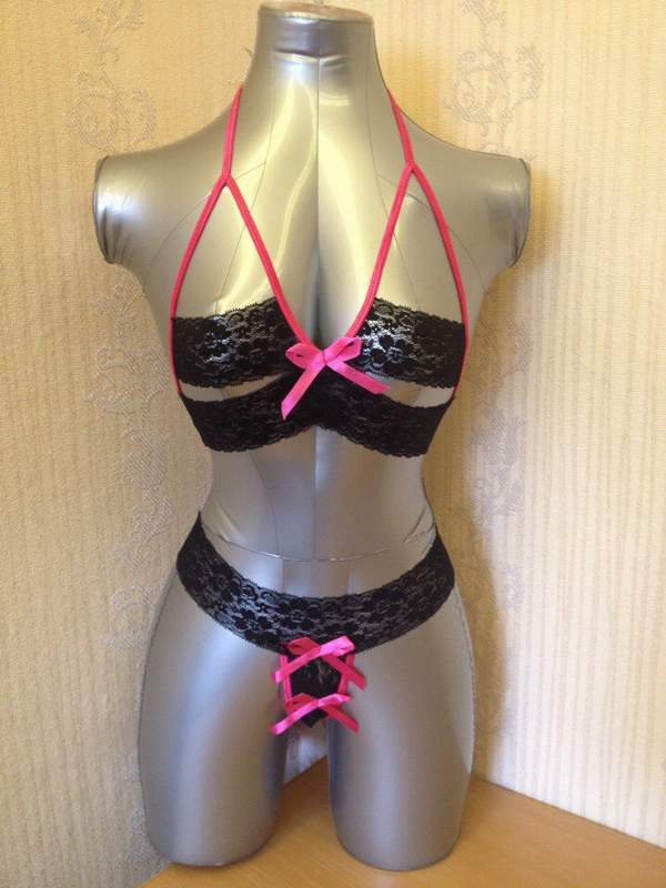 Мягкий кружевной комплект классического черного цвета с контрастной отделкой.