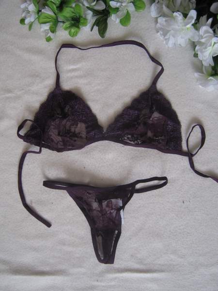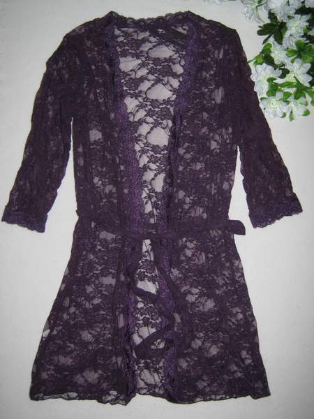 Прозрачная насышенного пурпурного цвета сорочка с цветочным узором в комплекте с лифом и трусиками.