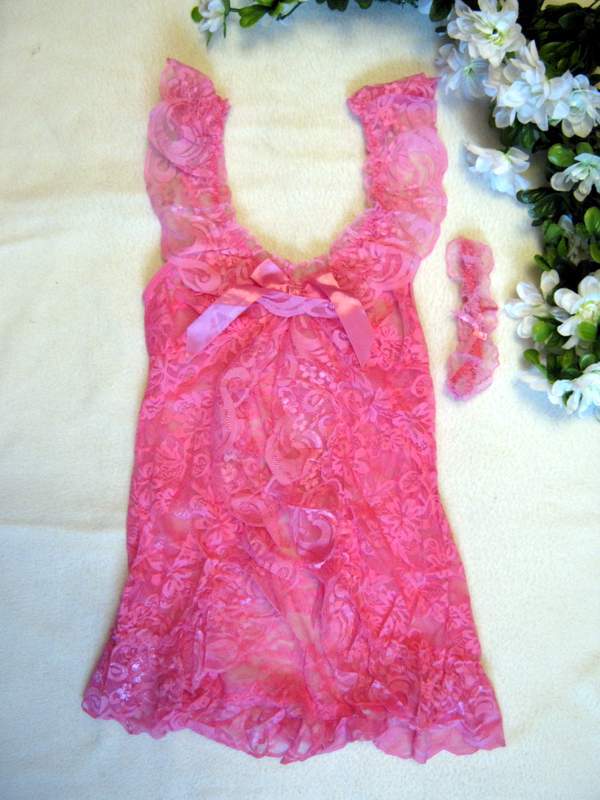 Кружевной комплект красивого эротического белья из комбинации и трусиков.