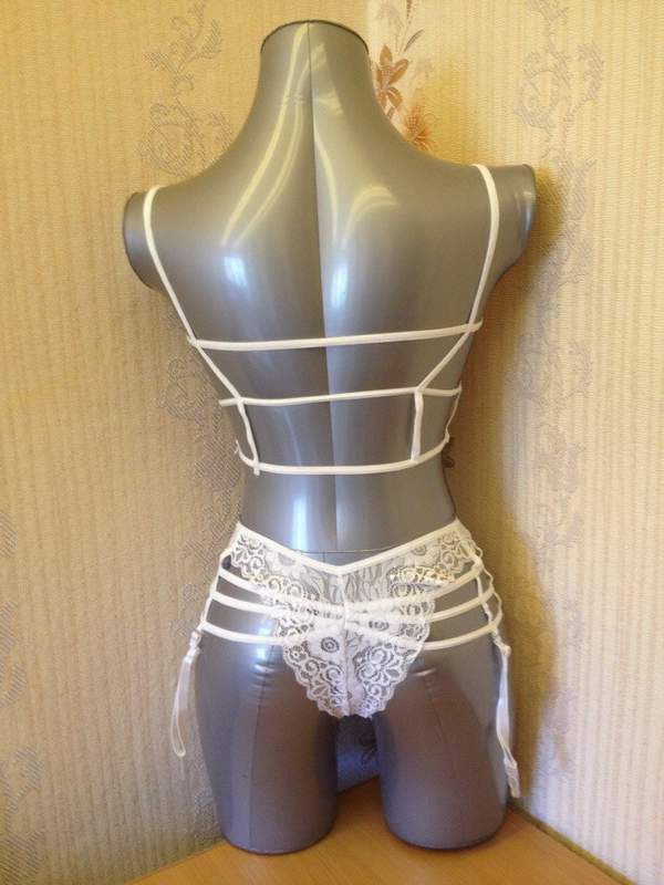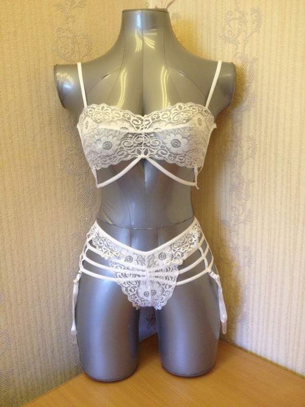 Очаровательный кружевной комплект из топика и трусиков. Чулки в комплект не входят