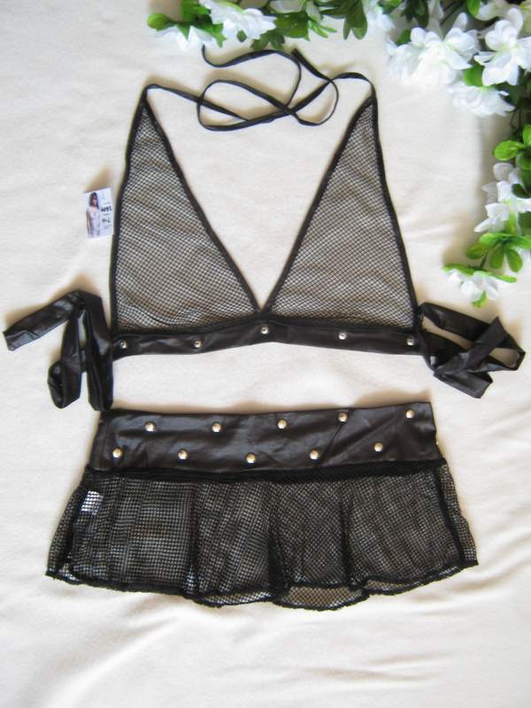 Сексуальный комплект в сеточку привлекает своей необычностью и пикантностью.