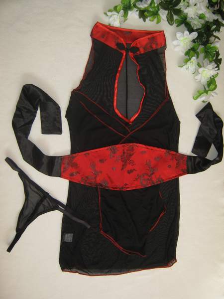 Эротический полупрозрачный комплект с открытыми плечами и контрастным поясом.