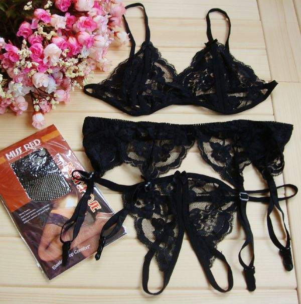 Комплектация: бюстгальтер, трусики, пояс для чулок, чулки