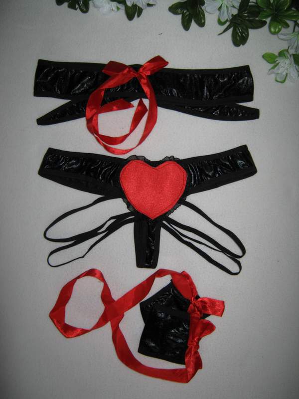 Этот эффектный комплект заставит чаще биться сердце Вашего мужчины. Топ представляет собой полоску ткани, завязывающуюся сзади
