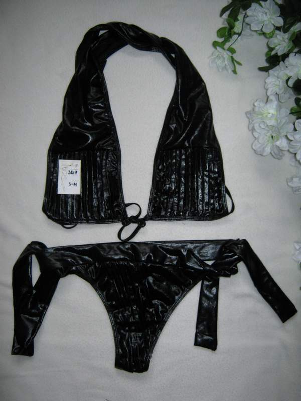 Соблазнительный виниловый комплект. Лиф можно завязывать различными способами, трусики завязываются сбоку. Фантазируйте!