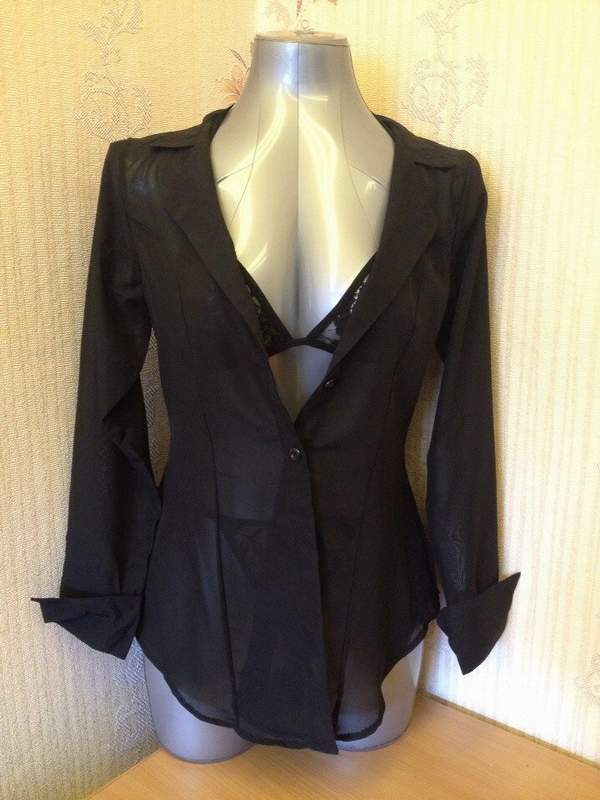 В комплекте кружевной топ, трусики и соблазнительная полупрозрачная рубашка.
