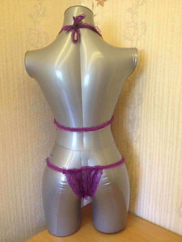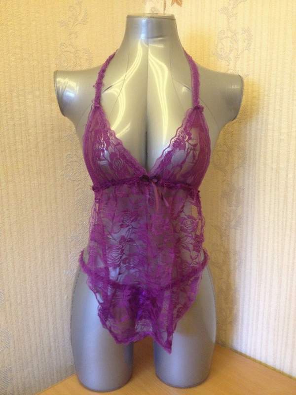 Кружевной комплект эротического белья, состоящий из сорочки-фартучка и сексуальных трусиков с разрезом в интимной части.