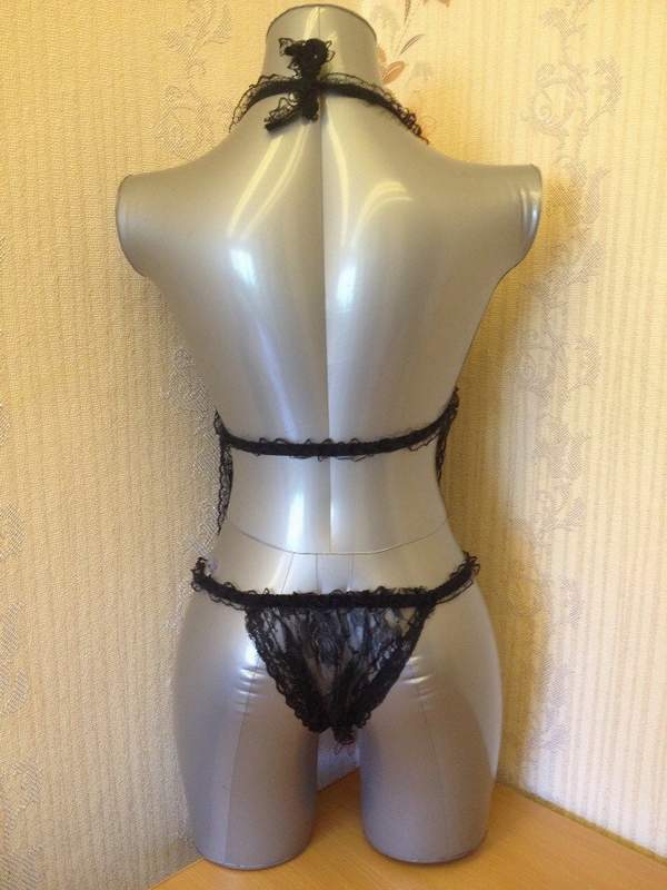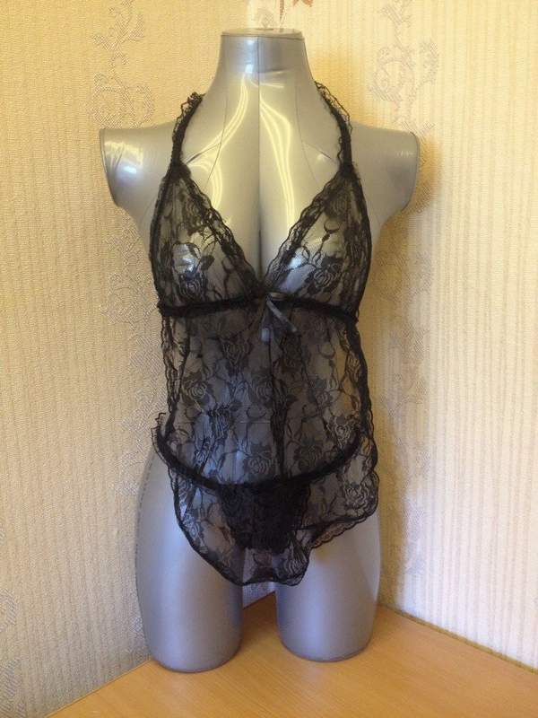 Кружевной комплект эротического белья, состоящий из сорочки-фартучка и сексуальных трусиков с разрезом в интимной части.