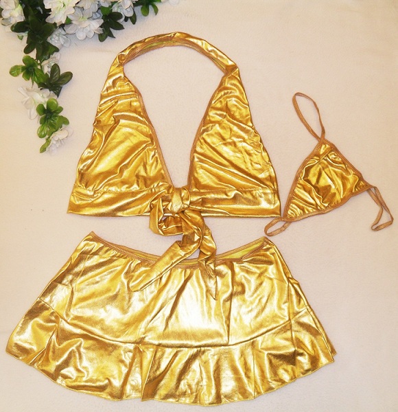 Яркий соблазнительный комплект из трусиков-стринг, мини-юбки и топа.