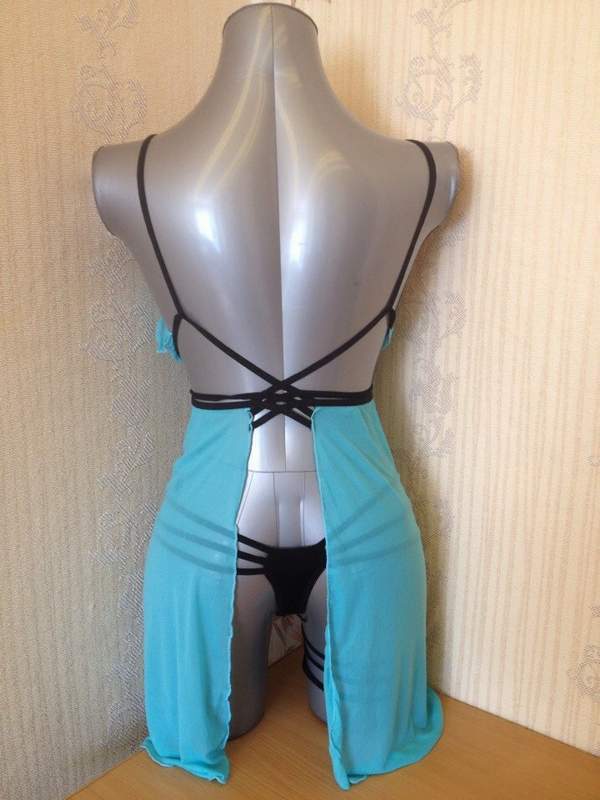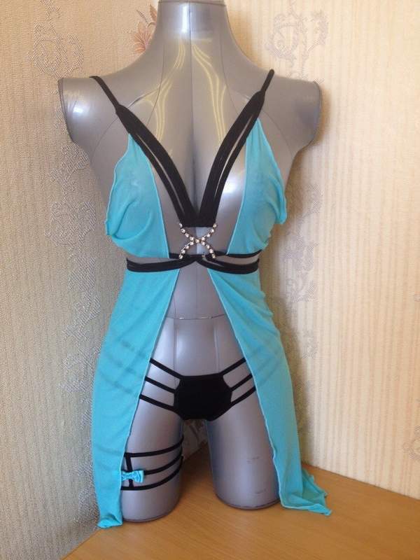 Короткая сорочка в комплекте с трусиками и подвязкой.