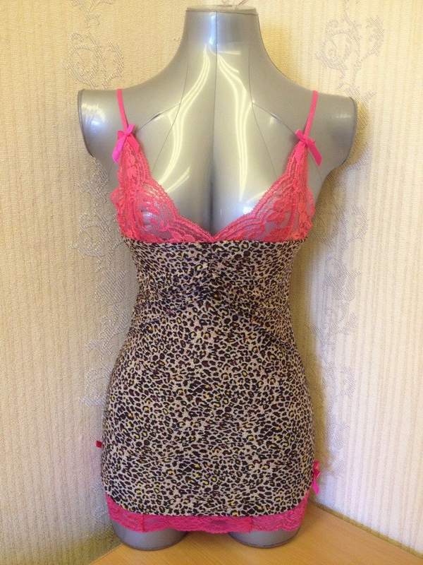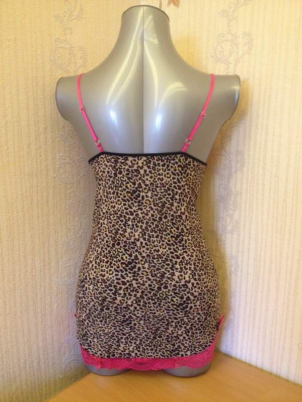 Мягкая леопардовая сорочка с ярко-розовым кружевным лифом.