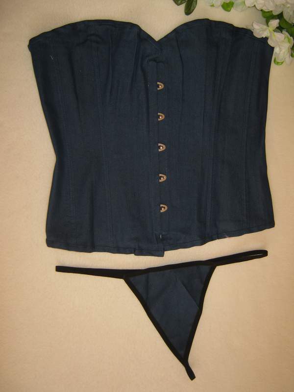 Джинсовый корсет с минимальной декоративной отделкой. Идеален для повседневного ношения. Шнуровка сзади, стальной бюск спереди.